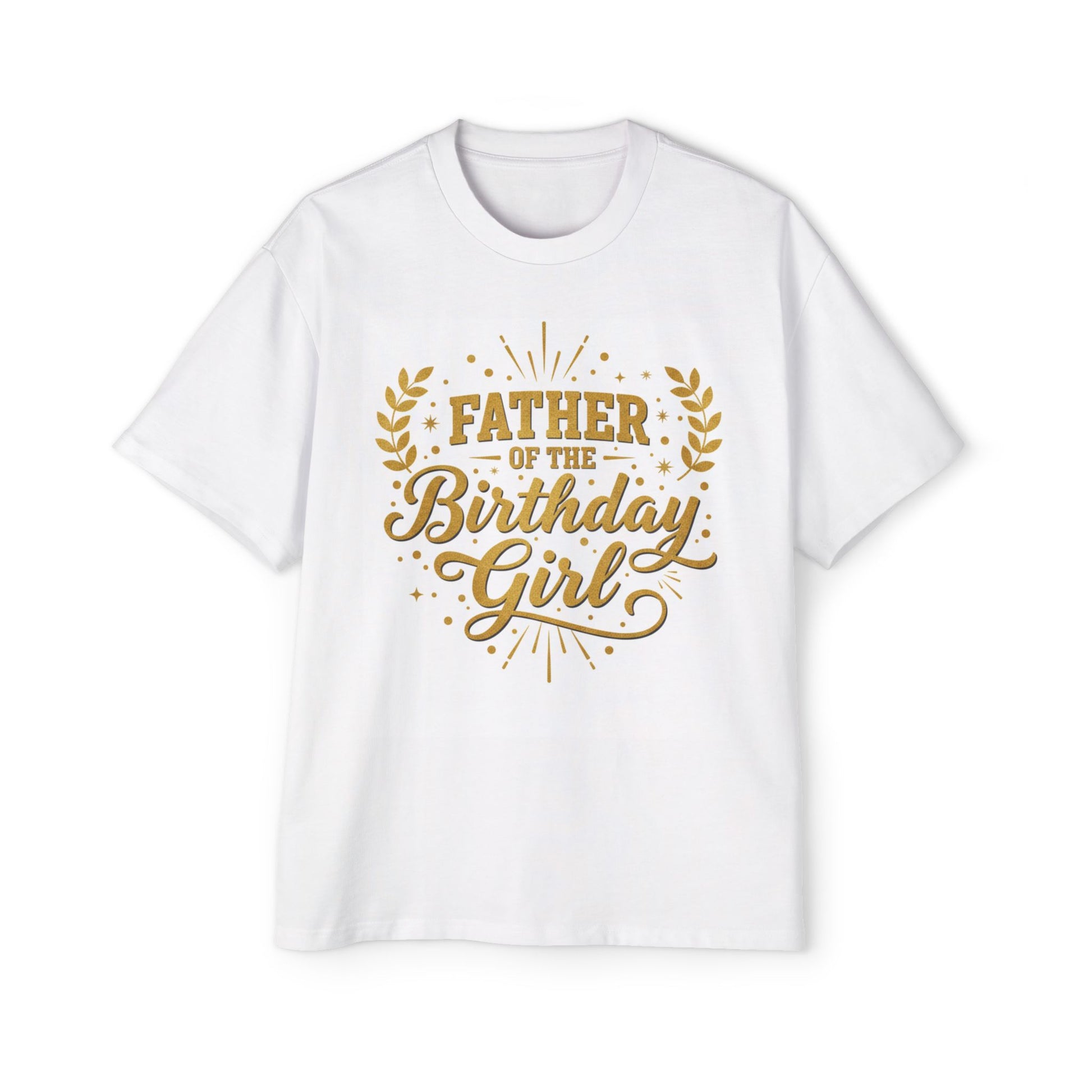 This oversized tee wears like a relaxed celebration. Soft, slightly weighted cotton drapes with laid-back confidence while the gold “Father of the Birthday Girl” graphic stands proud at the chest — a playful badge of honor for dads steering the party. The roomy cut and dropped shoulders keep movement easy: carrying cake, corralling kids, or lingering at the photo spot. Subtle construction details (shoulder-to-shoulder tape, double-stitched hems, and a sewn-in label) mean this shirt keeps its shape and keeps being reach-for-ready, wash after wash. It feels like a comfortable layer of confidence for any birthday gathering.